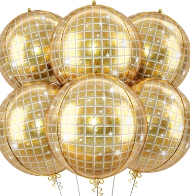 This set of six 22-inch gold disco balloons adds instant shine and party vibes to any retro event or celebration.