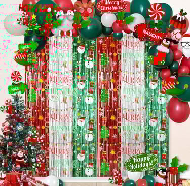 Create a dazzling party scene with this high-quality tinsel backdrop and durable balloons—safe, vibrant, and perfect for all-day holiday fun!