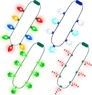 Light up the fun with 3 sets of 4 unique Christmas light-up necklaces—perfect for party favors and festive holiday décor!
