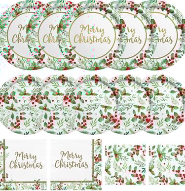 Celebrate the season with this festive Christmas party pack featuring classic red and green holly designs and golden “Merry Christmas” accents—perfect for a joyful holiday table!