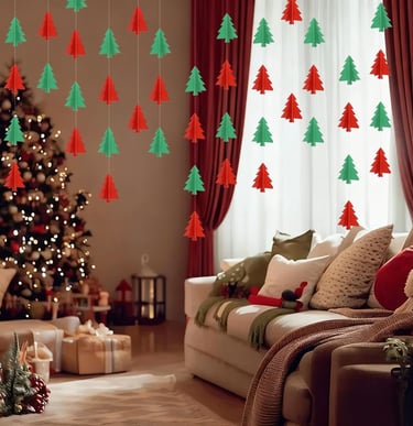 Add festive charm to your space with this 2-pack 3D Christmas tree garland set—nearly 10ft each, made from eco-friendly cardstock, perfect for creative holiday DIY décor!
