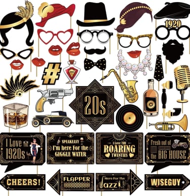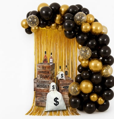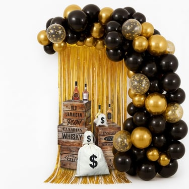 Create an unforgettable Roaring 20s atmosphere with this all-in-one decor kit featuring vintage props, balloons, and fringe curtains for a true speakeasy vibe.