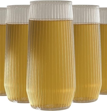 These 9 oz BPA-free champagne flutes feature an elegant ribbed ripple design, adding sophistication to any wedding or party toast.