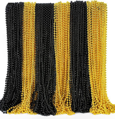 This 100-piece black and gold bead set includes multiple accessories to complete your 1920s party look.
