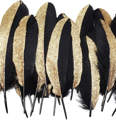 These natural feathers with a golden sheen add an elegant, eye-catching touch to any party decor.