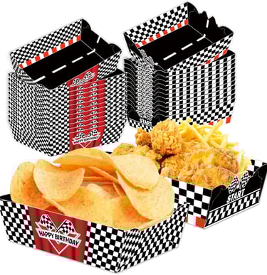 Serve in style with these 24 race car-themed food trays—designed inside and out to keep your party looking fast and fun!