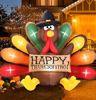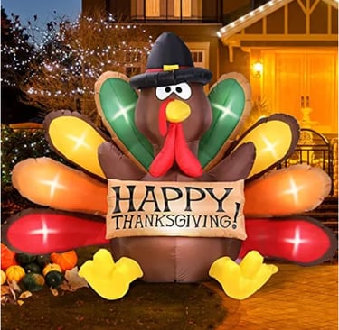 This 6ft inflatable Thanksgiving turkey with bright LED lights, durable waterproof fabric, and easy self-inflation is the perfect festive yard decoration to create a warm, fun, and eye-catching holiday atmosphere.