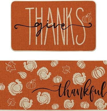 These durable, non-slip kitchen mats feature stylish seasonal designs, come in two convenient sizes, and are easy to clean—perfect for adding comfort, color, and protection to your kitchen or entryway.