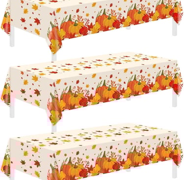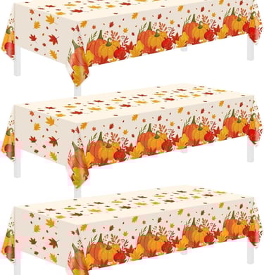 These 108x54 inch fall tablecloths fit standard tables for 6–8 people. Made of waterproof PE, they feature bright pumpkin and leaf designs. Perfect for Thanksgiving or fall parties, they’re disposable for quick, easy cleanup.