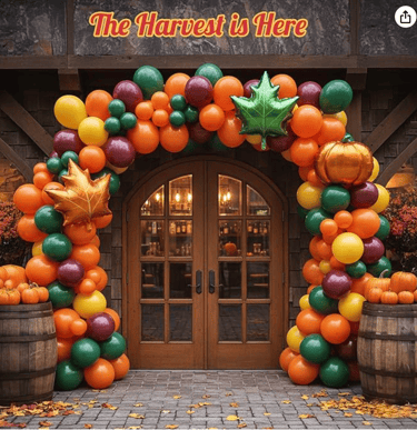 This all-in-one fall balloon kit includes real-color balloons, mylar accents, and maple leaves for easy, elegant decorating—perfect for any autumn celebration.